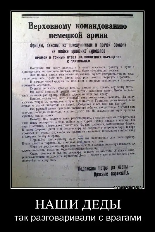 Ай, как про партизан-то понравилось!!! Почитайте, не поленитесь. Как всё таки умели выразиться, чтобы и матом покрыть и сказать против ничего б не могли.