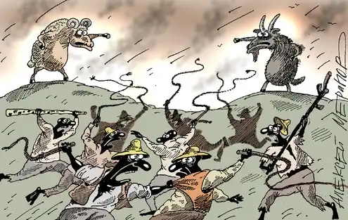 Политическая сатира, конечно, поострее, но и здесь встречаются Вещи.