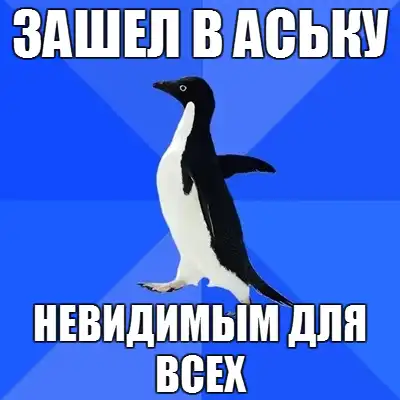 Социально-дезориентированный пингвин (Socially-awkward penguin) отражает ту самую слабую сторону Анонимуса: застенчивость перед девушками, боязнь общества и апатию.