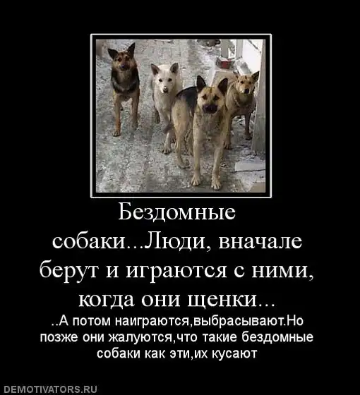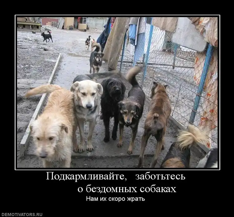 На десяток мирных голодных бездомных собак всегда приходится хотя бы одна агрессивная голодная бездомная собака. Учитывая стайный инстинкт, в сумме мы имеем (10 плюс 1) собак, несущих потенциальную угрозу вообще любому мимопроходящему. А уж если из твоего пакета пахнет едой, или собака просто не в духе - угроза становится вполне реальной. И "защитнички" говорят мне, что я должен о них всячески заботиться?) Увольте.