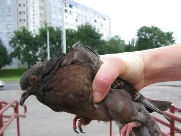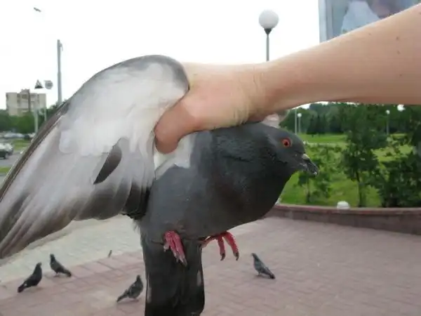Или самого жирного. Голубь исключительно тупая птица, таким способом можно поймать до 3 штук на одном месте. Правда, с третьим я промахнулась :(