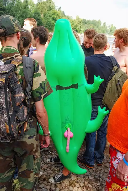 Одна девушка пришла с надувным крокодилом, но нельзя же плыть на обычном крокодиле-матрасе, поэтому она приклеила к нему елду.