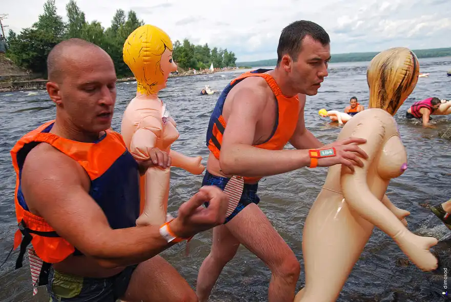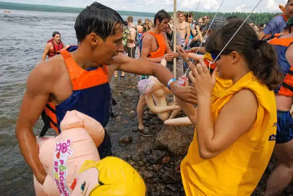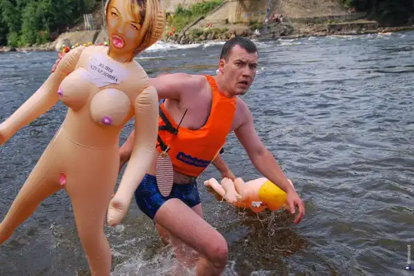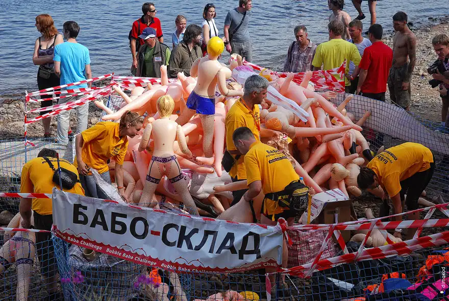 Резиновая баба – это не более чем средство передвижения. С таким слоганом 6 августа 2011года прошел ежегодный заплыв на резиновых женщинах по Лосевским порогам Вуоксы, в 90 километрах от Санкт-Петербурга. Желающих опробовать баб в действии оказалось более 800 человек.