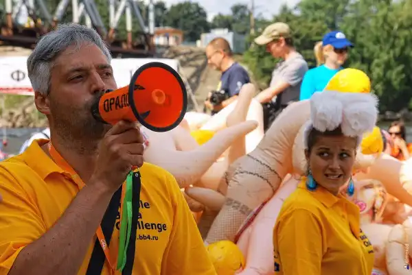 Обзаведясь резиновыми подругами и спасательными жилетами, участники двинулись к старту.