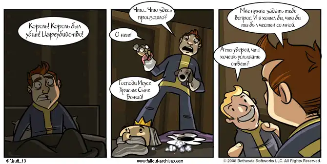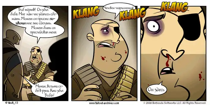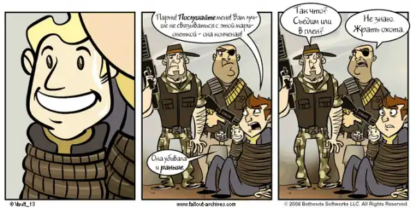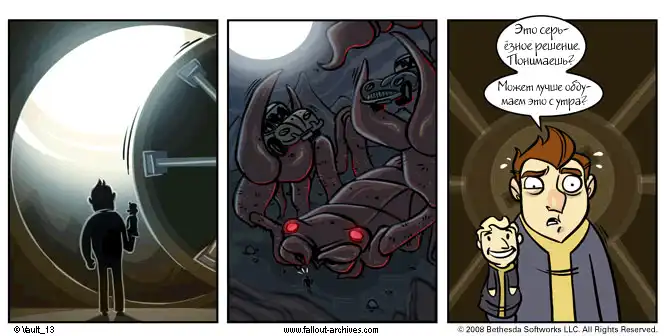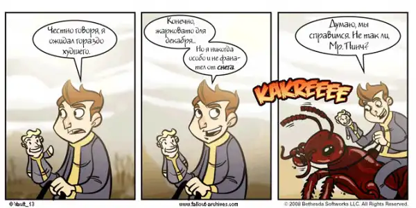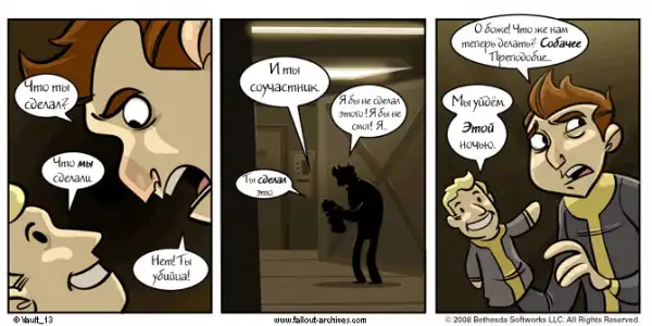 Ожидание не всегда оправдываются,но ты бы мог хотя бы проверить дату опубликования Nuka Break 2011 год... и посмотреть на подпись на комиксе 2008 год... Следуя простым логическим выводам, можно понять, что Nuka Break содрала, как ты выражаешься, у разработчиков Fallout, а не наоборот...