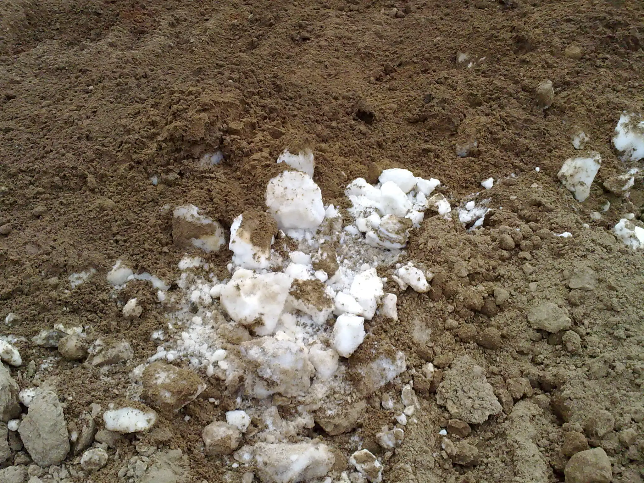 Блин, я на стройке в Томской области работал. В жару 30 приехал Камаз с песком (видимо только что набранным), мы точно также нашли снег. Ну и в снежки поиграли :)