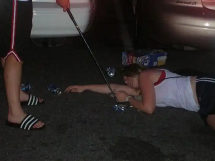 нужно запомнить главное правило, если ты идешь куда то на вечеринку где есть выпивка - нужно идти с проверенным другом, который не допустит подобнй карикатурной насмешки, который не допустит что бы ты стал пьяным посмешищем для толпы. школота, запомните это правило!