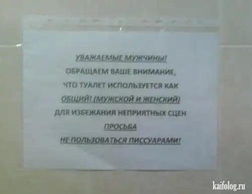 Наверное, только в нашей стране можно собрать столько приколов на туалетную тему: сортиров у нас много, а их посетители не всегда культурные люди. Смотрите прикольные фото русских туалетов и оставляйте в них чистоту. :)