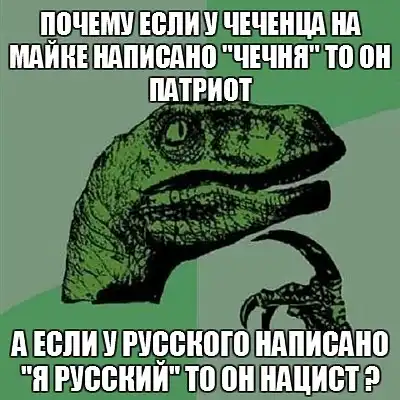 "Почему если у чеченца на майке написано "Чечня",то он патриот,а если у русского написано "я русский",то он нацист?"
