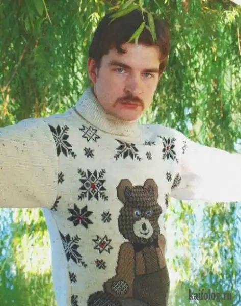 свитер пять баллов. у меня такой же был)). и про путина на повозке тоже подумал))