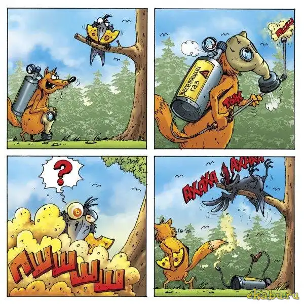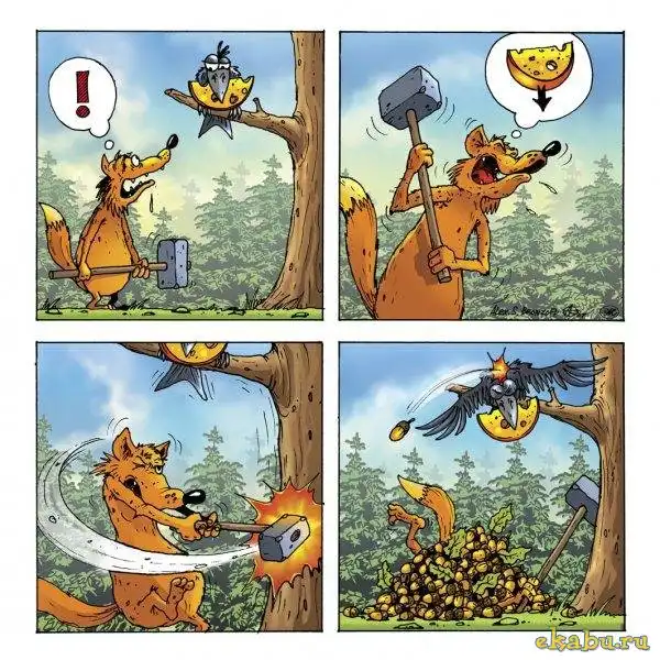 Это в басне лисица была хитрая и изобретательная. В этих же комиксах она идет к своей цели напролом.