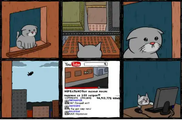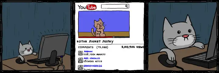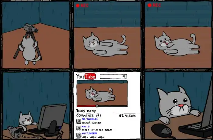 Смешной комикс про кота, который хотел сделать популярный ролик на YouTube.Довольно веселый комикс=))(Все на youtube хотят быть популярными, даже котэ=))