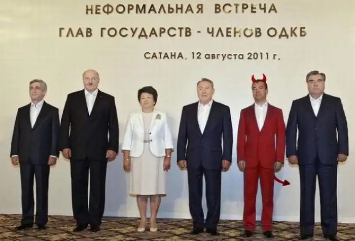 На этой встрече был сделан групповой снимок, над которым изрядно поиздевались интернет-пользователи.