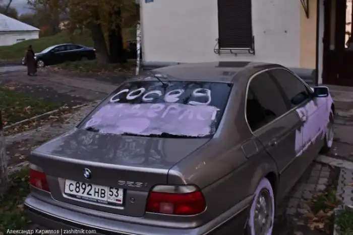 Этот случай произошел в Великом Новгороде, где маляры круто отомстили водителю автолюбителя. Они перекрасили его BMW в розовый цвет за то, что тот припарковался на тротуаре.