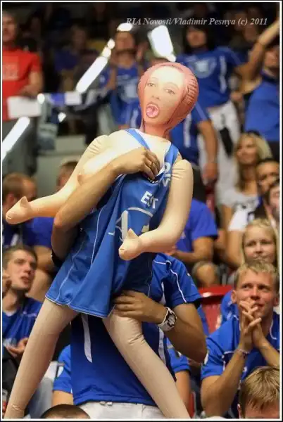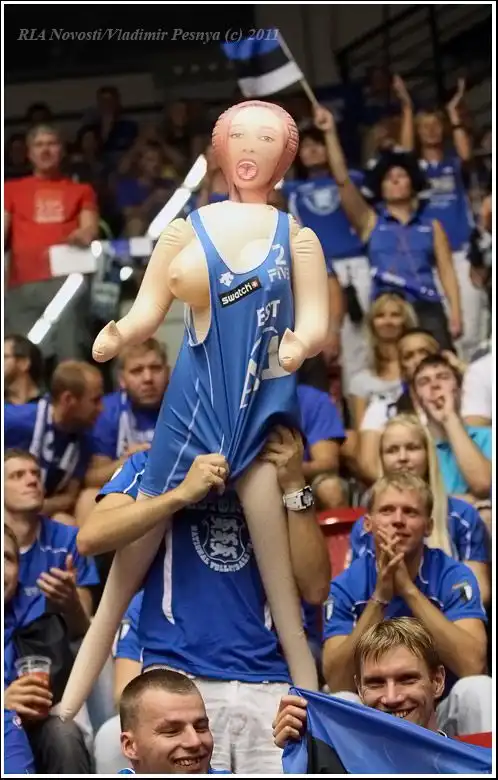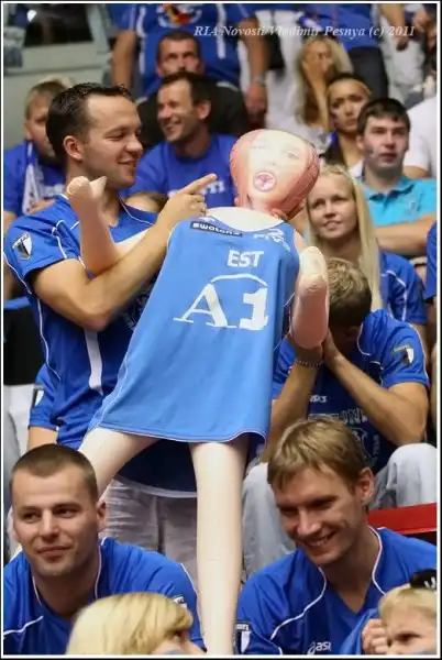 Со стороны эстонских болельщиков была замечена очень странная персона, которая поддерживала игроков с трибуны.