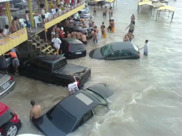 Какая трагедия на пляже в Бразилии, где прибывающая вода смыла машины в воду. Отвоевать у стихии их теперь будет очень сложно.