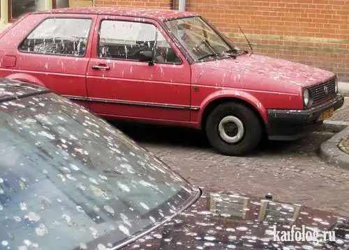 Парковаться под деревьями очень опасно. Это вы поймете сами, когда посмотрите приколы про обосранные авто. А самое главное, если вдруг подобный казус произойдет с вашей машиной, не стоит сильно огорчаться. Ведь, есть очень верная русская примета: гамно - к деньгам. Вобщем ищите во всем позитив и надежное место для вашей тачки, если не хотите ее отмывать. :)