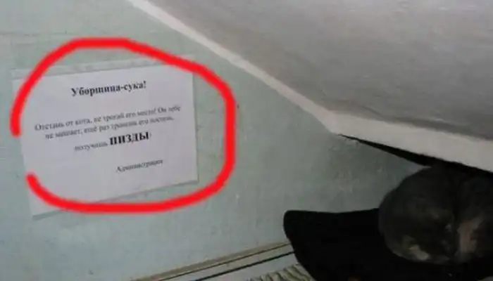 Спящий кот в подъезде и угрозы в сторону уборщицы! Жесть