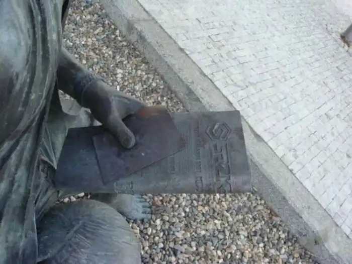 Теперь немного правды. Скульптура ранее называлась „Pencil Please", в 2001 году ее приобрела самая большая букмекерская контора Чехии «Сазка» и поставила возле входа в свое административное здание.