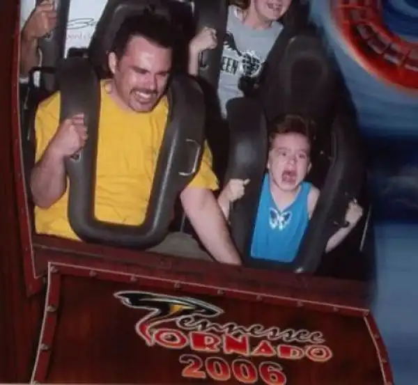 Но есть и такие, кто делают вид, что им все равно, и сидят на аттракционе, как на лавочке в парке :)