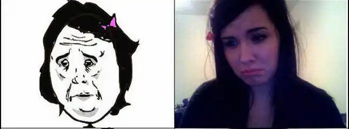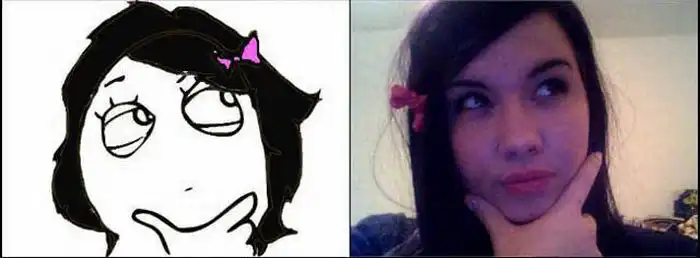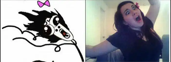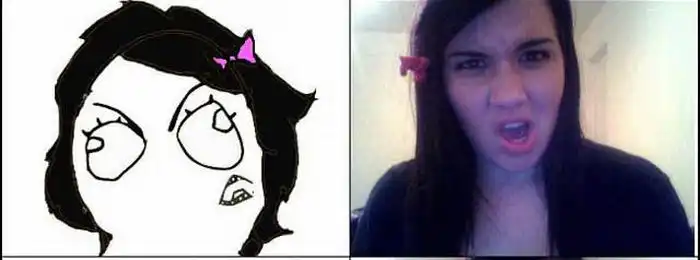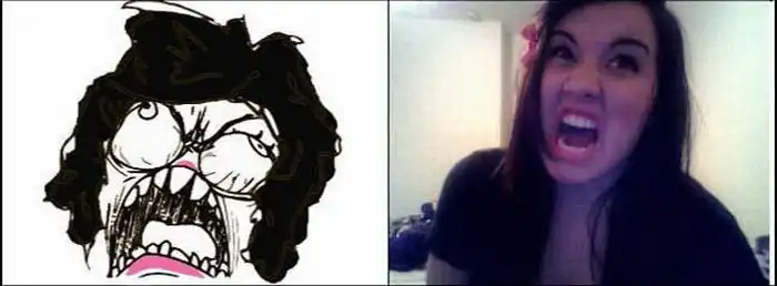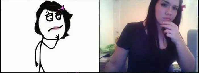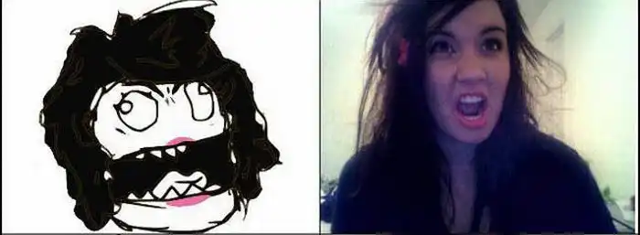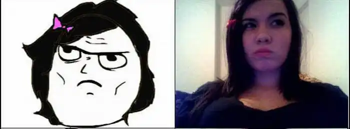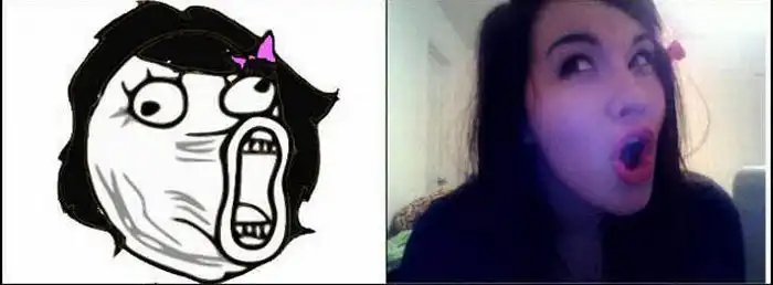 Забавная девушка пытается скопировать рожи с комиксов.Иногда у нее это получается :)