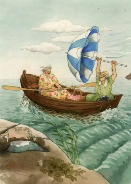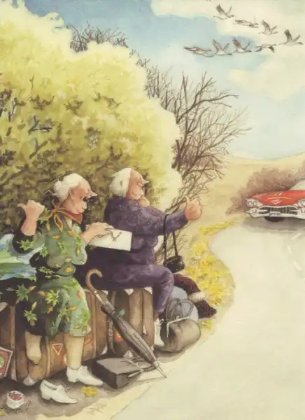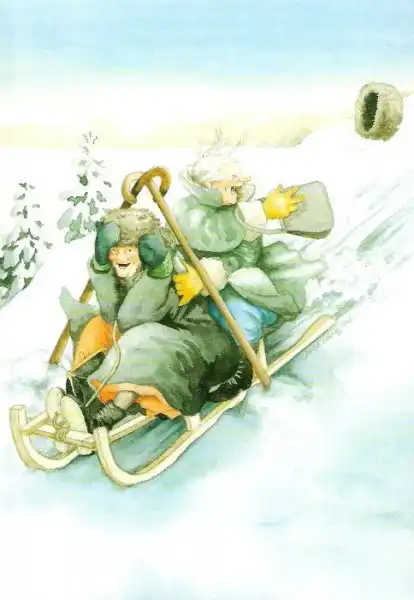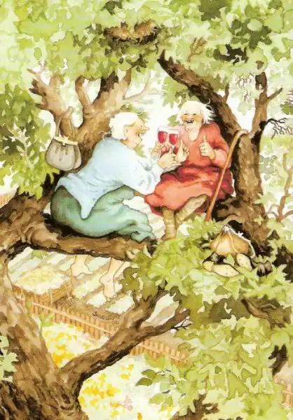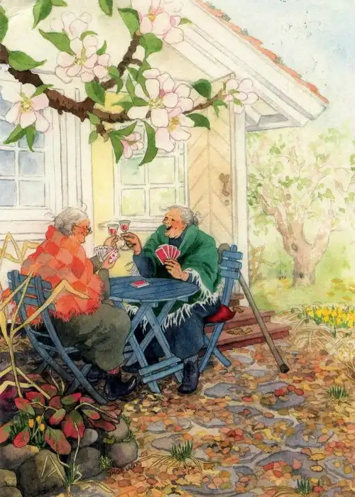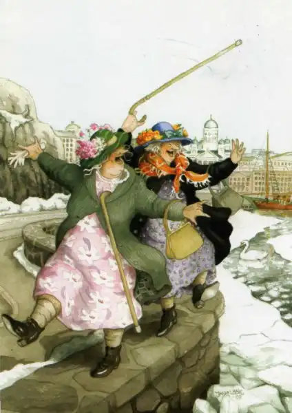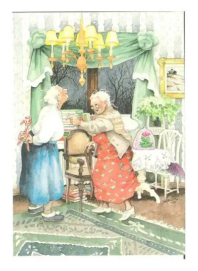 Inge Löök, иллюстратор и садовод родилась в Хельсинки в 1951 г. Окончила среднюю школу в 1972. Получила образование ландшафтного дизайнера в 1974 году , закончила Университет искусств и образовательный центр для графического дизайнера в 1979. 6 лет в поисках себя проработала садовником, пока подруга не попросила её нарисовать несколько карикатур для газеты. Затем были журнальные иллюстрации, открытки, календари - и, в конечном счете, Инге Лоок в 1979 году решила работать как независимый художник. Нарисовала более 300 открыток, из которых около половины на тему Рождества. Иллюстрирует книги и журналы, особенно на садоводческие темы. Наибольшую известность ей принесла серия "anarkistisista mummokorteistaan" - весёлых, не желающих стареть старушек. Первый рисунок бабушки появился в 2003 году, сейчас их около 20, открытки и календари с ними разлетаются как горячие пирожки по всему миру. Техника: акварель и чернила. Сама Инге пишет: "Я бы хотела, чтобы люди иногда останавливались, а не носились сломя голову от одного проекта к другому. Чтобы они умели быть довольны тем, что у них есть. Мне кажется, одна из святых правд жизни — это жизнь именно в настоящий момент. Я сама все время борюсь за то, чтобы запоминалась ценность именно текущей секунды".