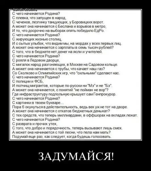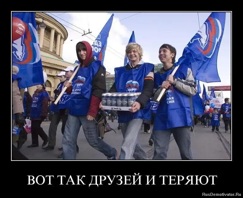 Я тут увидела у нас рекламный щит единой россии, там написано кратко и локонично: Вместе победим! Чуть ниже 4 декабря.