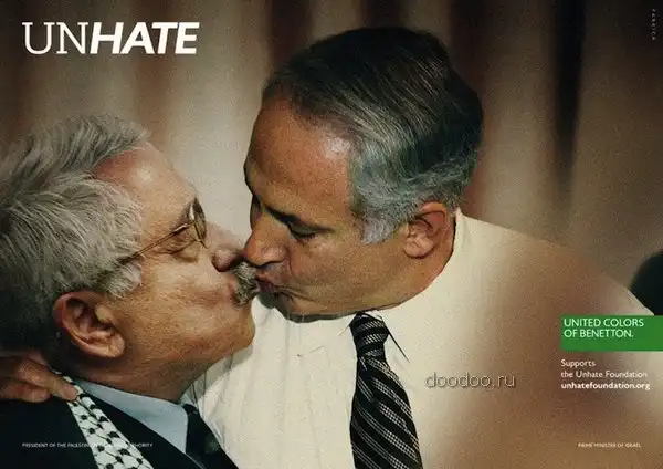 Эти плакаты появились на улицах крупнейших городов мира. Бенеттон заставил целоваться политиков, которые не оч переваривают друг друга.