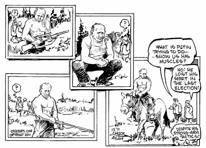 Что Путин пытается сделать... Показать свои мускулы? Нет он просто потерял свою футболку во время последних выборов.