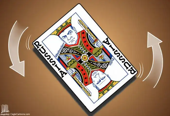 Путин и Медведев меняются шапками