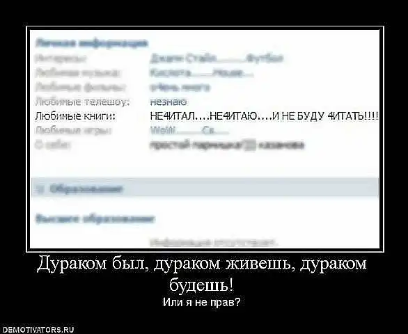 Одни из самых тупых и примитивных демотиваторов что я видел. Проблема затрагивается, но не рассматривается, главное повозмущаться, но не понять причины и высказать предложение по выходу из данного положения. Даже в такой, краткой форме. Как говорится - "не умеешь срать, не мучай жопу"