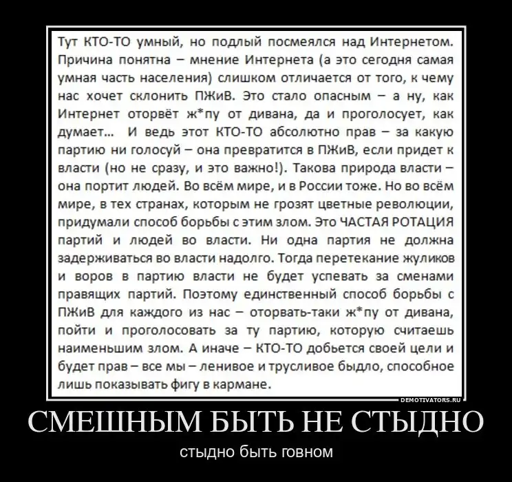 некоторые демотиваторы взаимнопротиворечивые, если уж и делать подборку, то не мешать всё в одну кучу