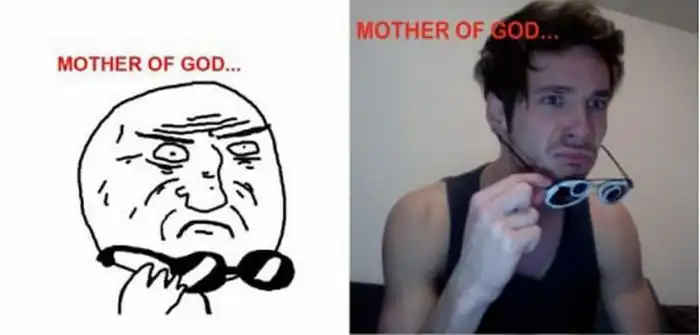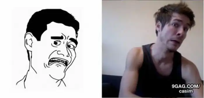 Парень копирует рожи из комиксов.