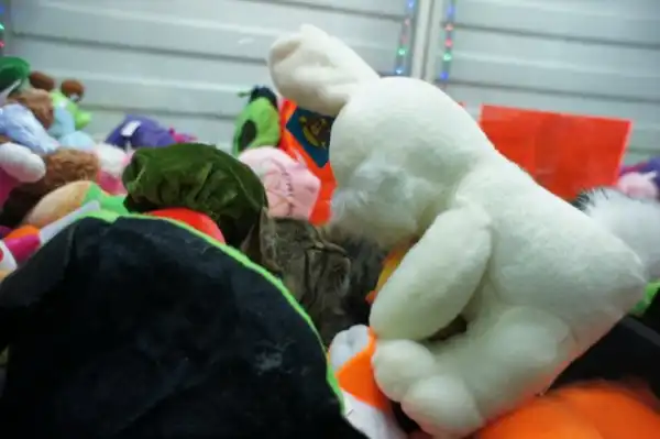 оо...! я помню, работала в торговом центре, и там тоже такой автомат стоял. и как-то раз в нём тоже обнаружили кота. (он через отверстие для вынимания призов забирается легко, если там дверцы нет). так он до вечера там дрых.