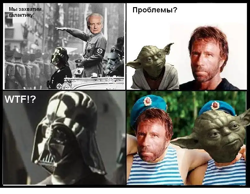 если честно - мне плевать на SW. Всё стянуто с фан-канала Дарта вэйдера и выложено для показа "над чем люди смеются"