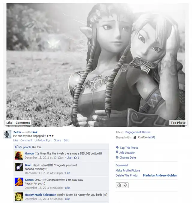 Что было бы, если Марио, Зельда и другие герои видеоигр были бы настоящими и имели профили в фейсбуке? Неизвестный автор выложил в интернет свои фотоманипуляции на тему вымышленных профилей. Посмотрите, как креативно аноним подошел к созданию не только фотографий главных персонажей, но и аватаров их друзей-комментаторов.