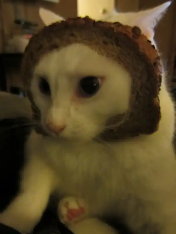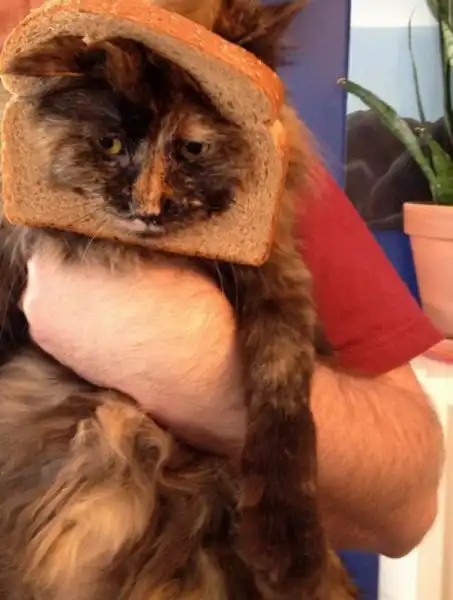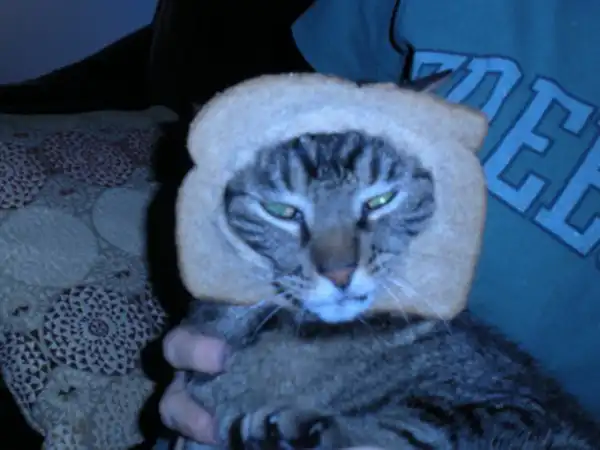 Странноватое хобби захлестнуло пользователей Интернет, имя которому "хлебокот". Они надевают на своих котов кусок хлеба и фотографируют животных в таком виде, а потом выкладывают в своих блогах, твиттерах и фейсбуках. Как будто у них дома живет живой сэндвич. Специальный tumblr не заставил себя долго ждать. Это блог, в котором даже есть конкурс на самого "хлебанутого" кота с голосованием, а также там разъяснены правила флешмоба.
