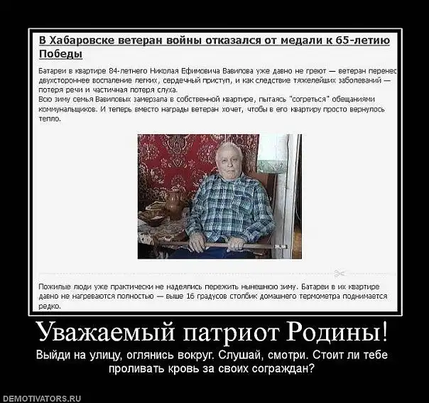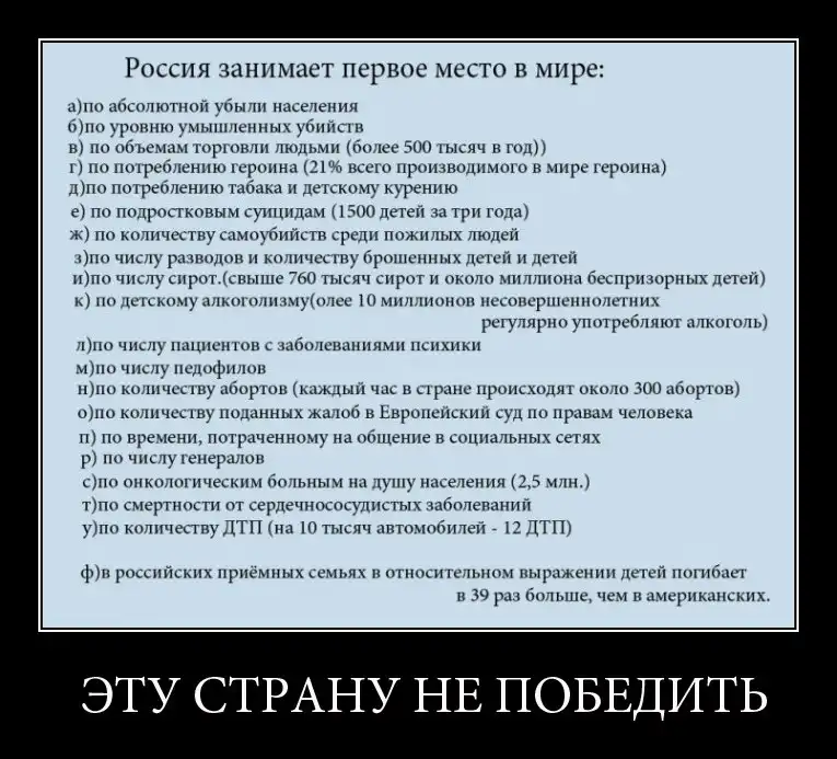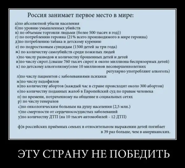 Очень мощные Демотиваторы с большой буквы. Некоторые просто на "гниль давят", некоторые прямо в точку, но, в основном - мощно! Бабульки возле контейнеров меня особо трогают - аж за страну обидно.