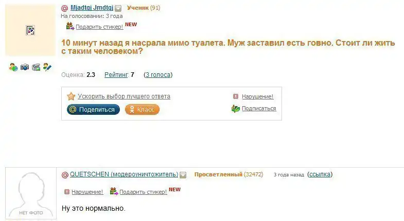 "Муж заставил есть гавно"