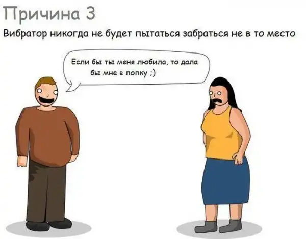 И да: Дорогие наши мужчины, вибратор никогда с вами не сможет сравниться, пока вы заботитесь о нас и любите. (т.е. пока вы в силах держать крепко, обнимать ласково, целовать нежно и не быть обузой в доме и семье,частью которой вы будете).