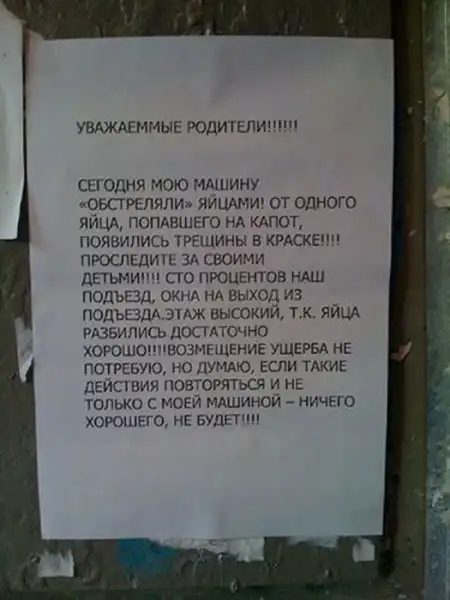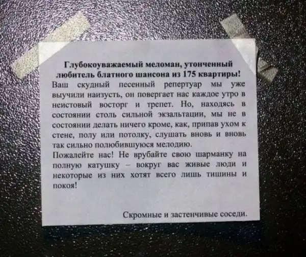 Смешные и грозные объявления, которые предназначаются соседям.Некоторые из них можно взять на заметку, если вас кто-то достает сверлением или скрипом гаражных дверей по утрам ;)