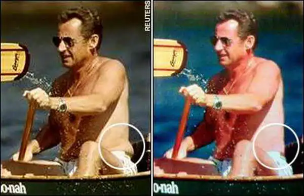 У Запада. Экс-президенту Франции Николя Саркози в свое время сделали «липосакцию» на фотографии, опубликованной в принадлежащем его другу-олигарху журнале Paris Match. Оригинальную фотографию снял журналист Reuters во время отдыха Саркози в Вольфборо, США.