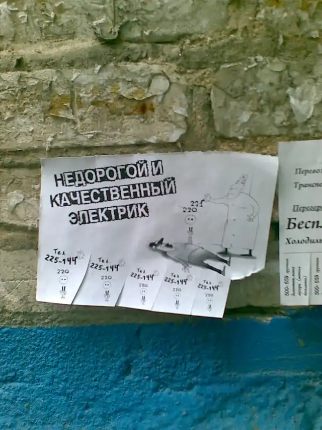 Объявление на столбе на улице Пролетарской
