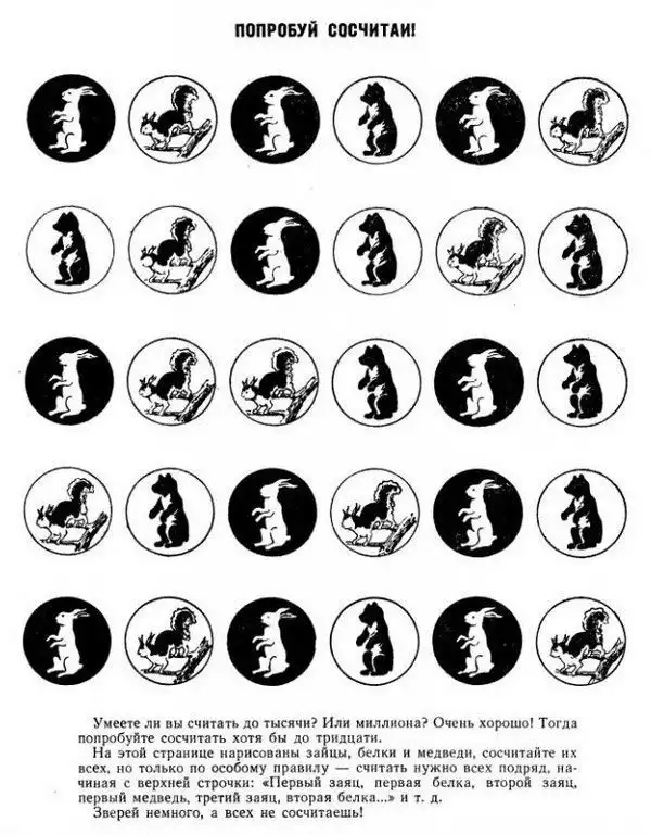 11 зайцев, 10 белок и 9 медведей, сосчитал меньше чем за минуту. Вот бредятина....