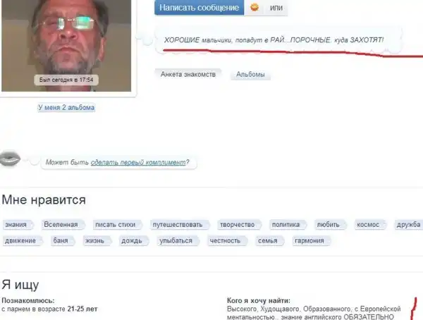 Не факт что все те, кто ищет парней, реально гомосеки. Может ищутпросто друга, или не обратили внимания на этот пункт анкеты.