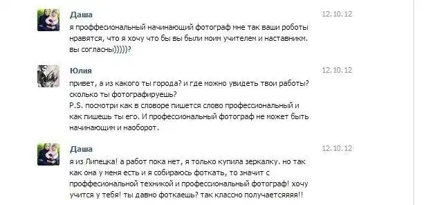 это точно. у меня многие из знакомых накупили зеркалки и возомнили себя супер фотографами, а у меня совесть не позволяет сказать им, что они фотают всякую хренотень.