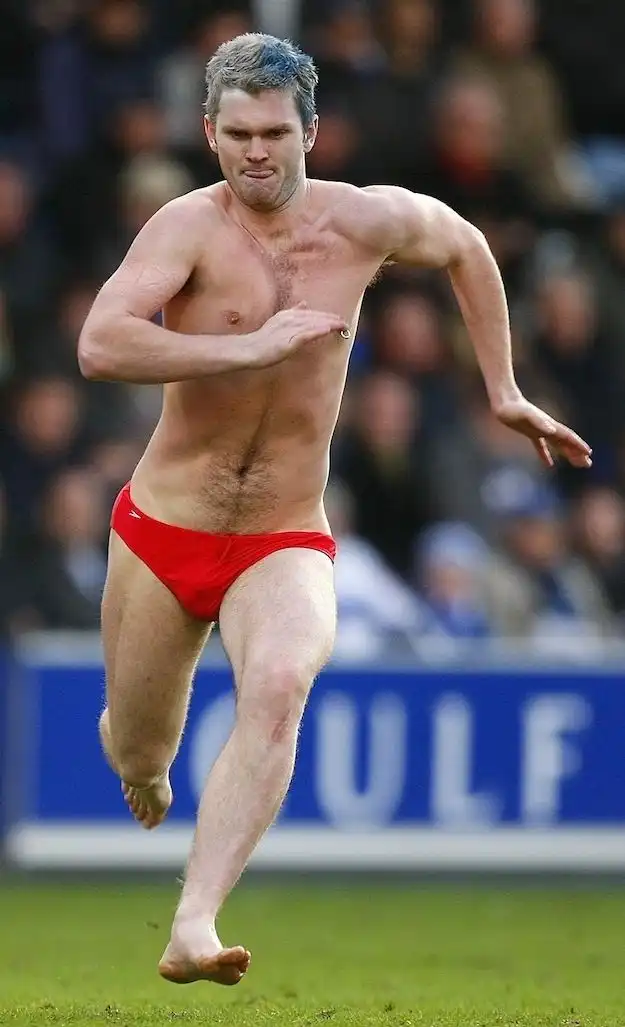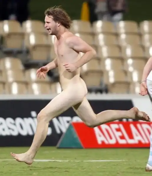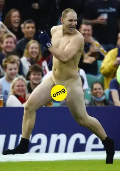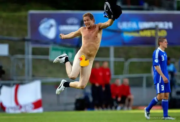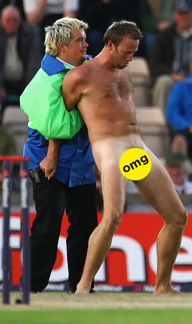 Я никогда не понимал, какой кайф в том, чтобы прервать спортивную игру, выбежав на поле в чем мать родила. Стрикеры какой-то прикол в этом находят. Смотреть на голые задницы мне лично никакого удовольствия не доставляет, поэтому посмотрим, какие рожи корчат эти задорные бегуны, сваливая от полиции.