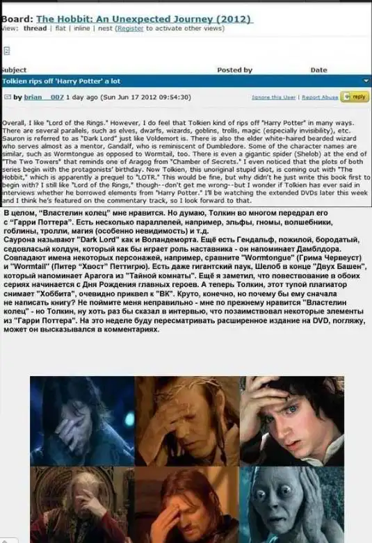 Неимоверно доставляет комментатор, который думает, что "Властелин колец" "слизан" с "Гарри Поттера"