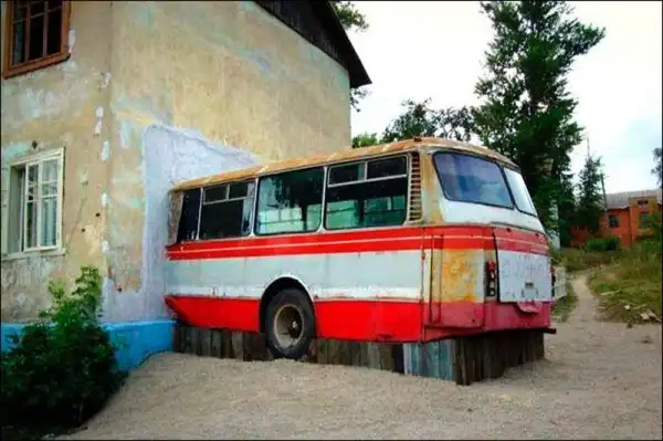 Вот такой вот румынский шик - пристройка из отжившего свое автобуса.