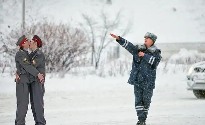 Как вы думаете, чего этот полицейский такой довольный? ;)